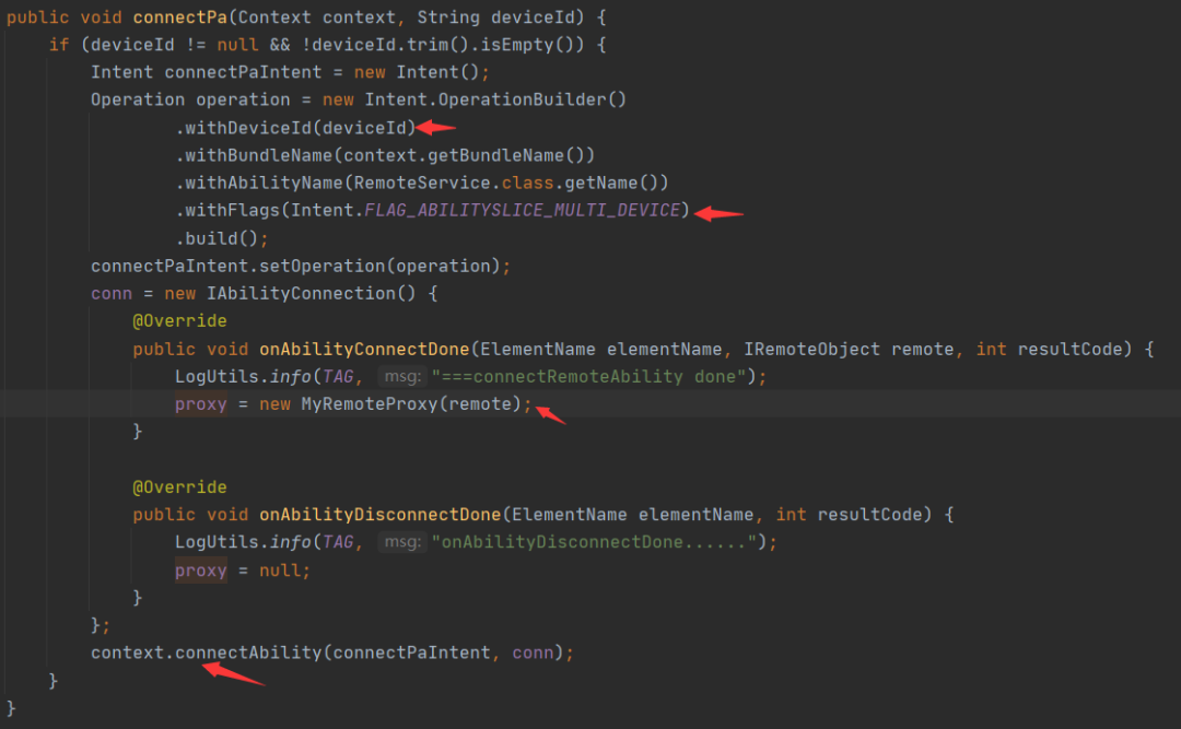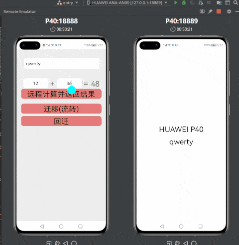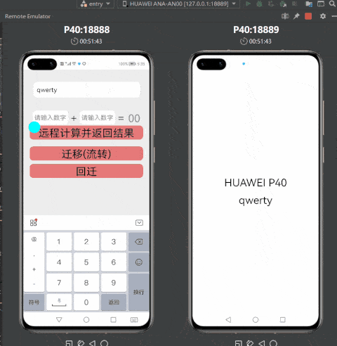 连接远程 PA(Particle Ability),发送控制命令&远端处理数据(场景 1:传递加法数据,远端计算后返回给客户端。场景 2:传递数据,远端 Service 接收后更新远端的 UI。)