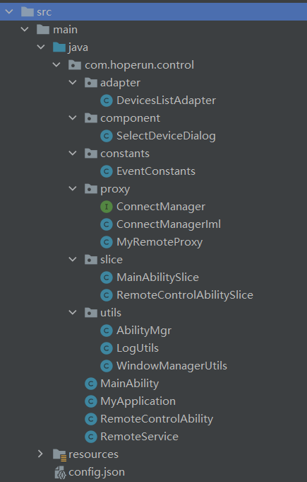 adapter:DevicesListAdapter,用于向 ListContainer 控件中填充设备数据。