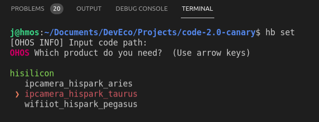 #弹出[OHOS INFO] Input code path: 直接回车后在选择“ipcamera_hispark_taurus”