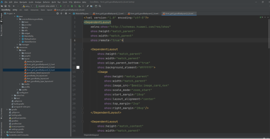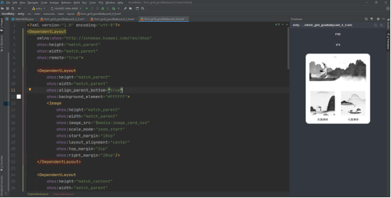 然后对 MainAbility.java 和 form_grid_pattern_goodbabycard_*.xml 布局文件修改,并新增准备好的资源文件。