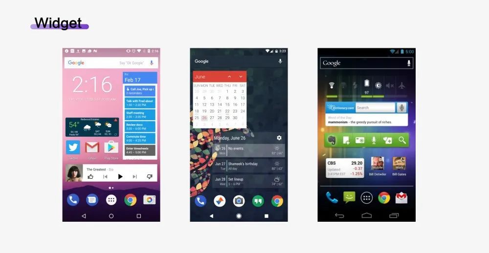 Widget 的定位其实相当于应用程序的扩展程序,使用的关键点在于用户可以在不打开应用、无需加载等待的情况下,在屏幕上快速获取信息甚至进行简单的操作。