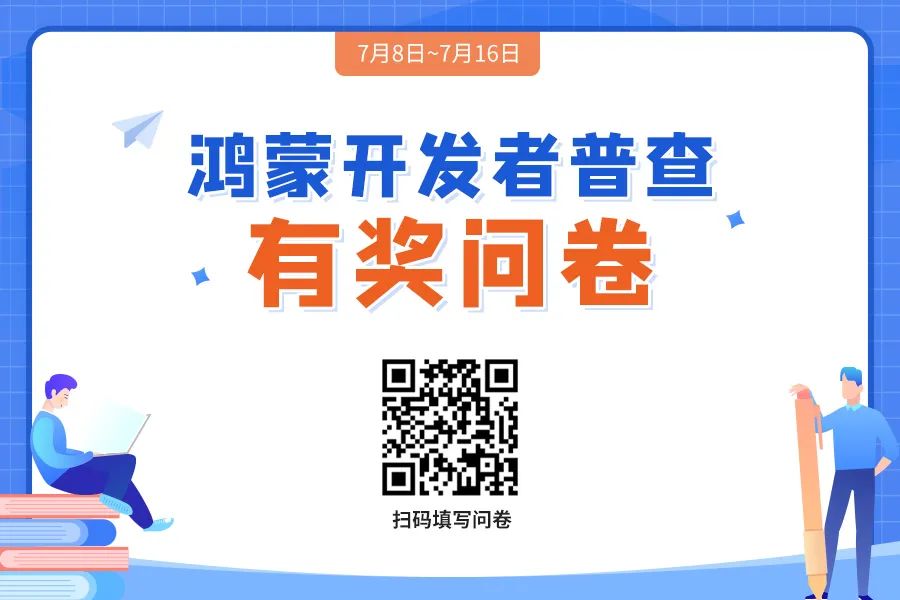 我们希望了解 HarmonyOS 开发者在学习状态,特此为大家准备了 HarmonyOS 定制 T 恤作为奖品,欢迎扫码填写问卷!
