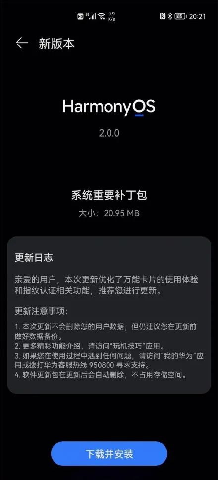 鸿蒙OS 2 推送重要补丁包