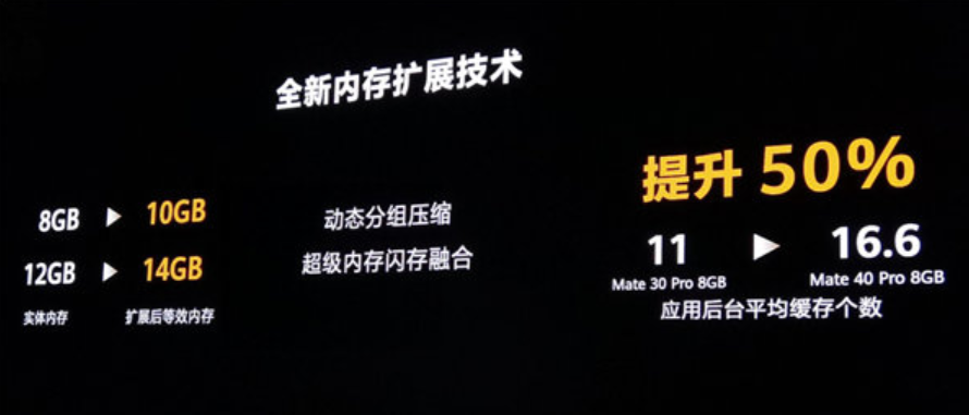 根据华为所说,这个内存扩展技术用到了动态分组压缩、超级内存闪存融合等技术,不过具体的原理没公布,有相关人员猜测是将闪存中部分容量用作虚拟内存。