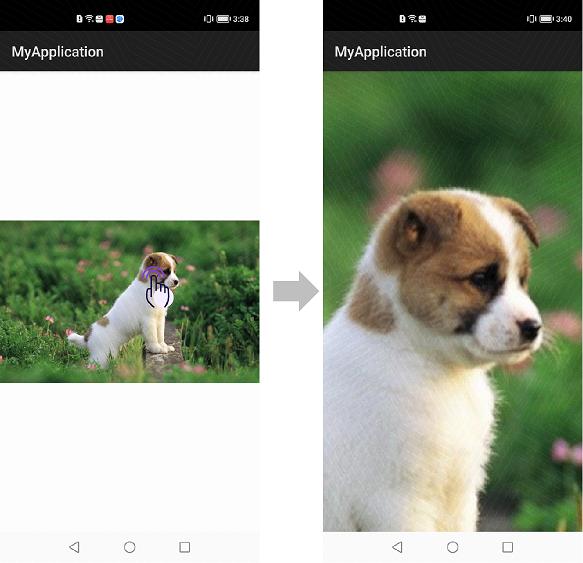 单指双击:表示用单根手指双击屏幕的操作,该操作可实现图片放大缩小的效果,单指双击完成图片缩放的功能是由 doubleTap() 方法实现的。