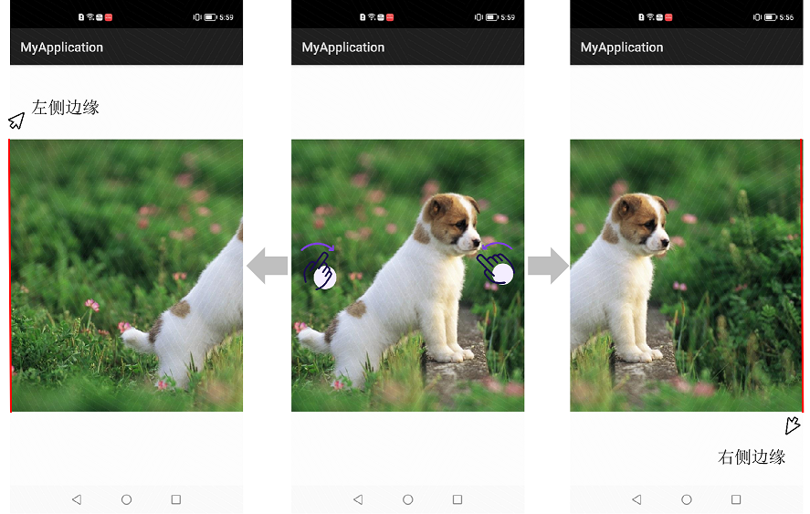 图片移动后,两侧都未超出控件边缘的情况下,将以手指触碰点作为控制点,对图片进行水平移动。
