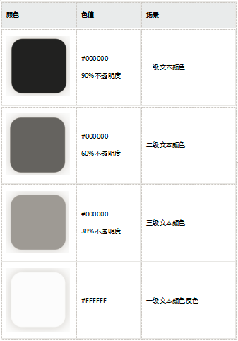 涉及到颜色的使用主要包括:文本的颜色、控件的颜色、前景色、背景色、渐变色,以及不同场景、不同设备中的颜色使用习惯。本篇文章主要是整理官网中描述的所有颜色标准。