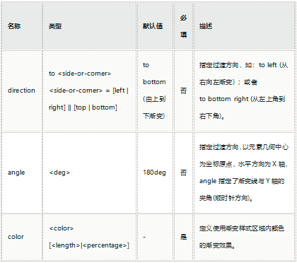 使用渐变样式,需要定义过渡方向和过渡颜色。