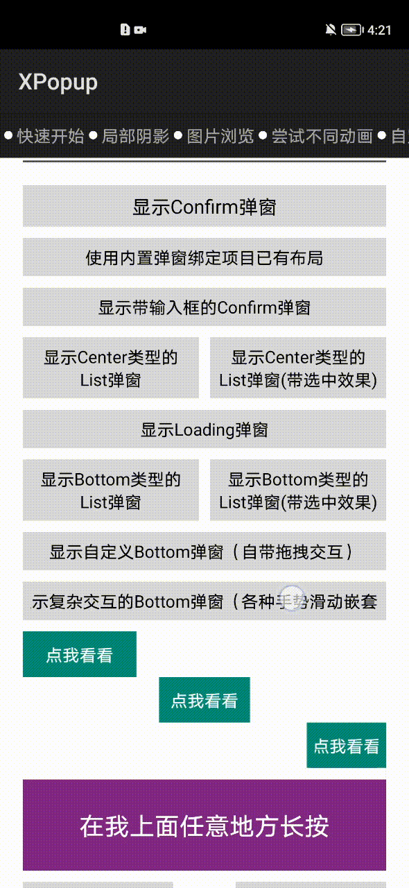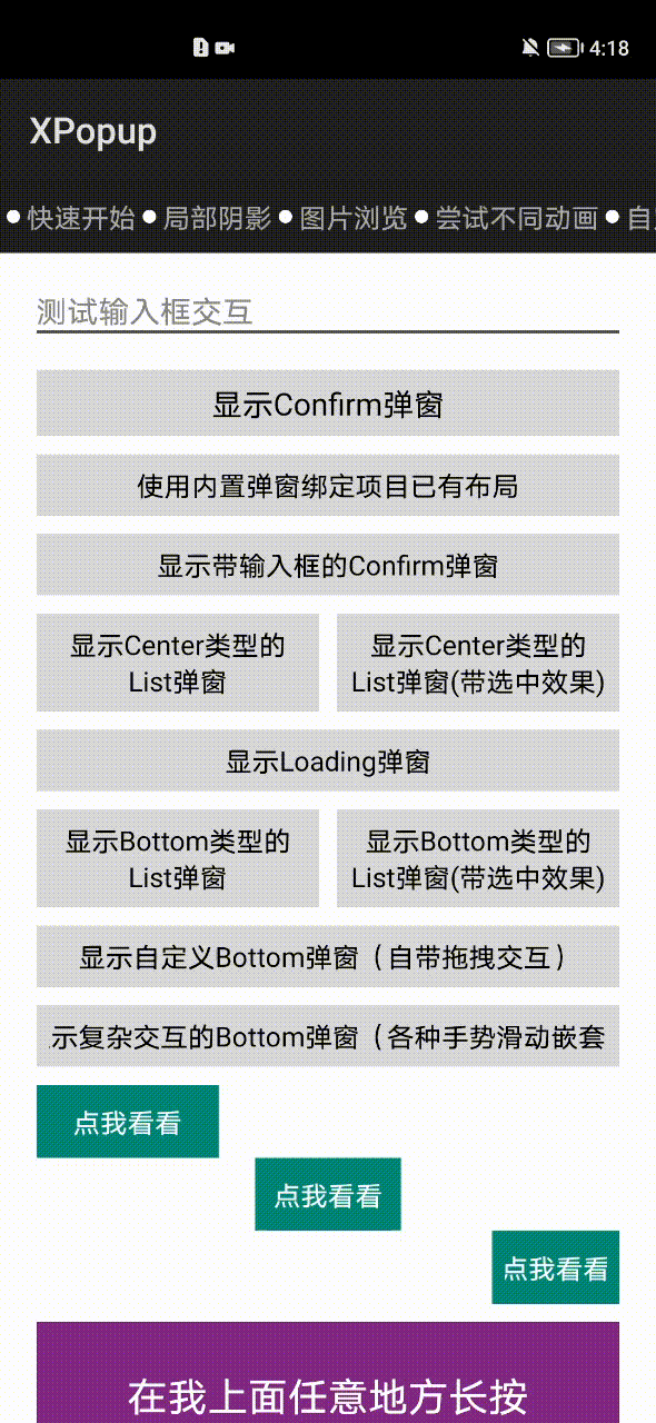 .show();// 图片加载器,XPopup不负责加载图片,需要你实现一个图片加载器传给我,这里以Glide和OkGo为例(可直接复制到项目中):