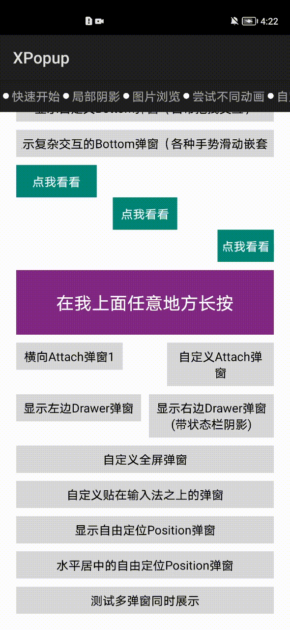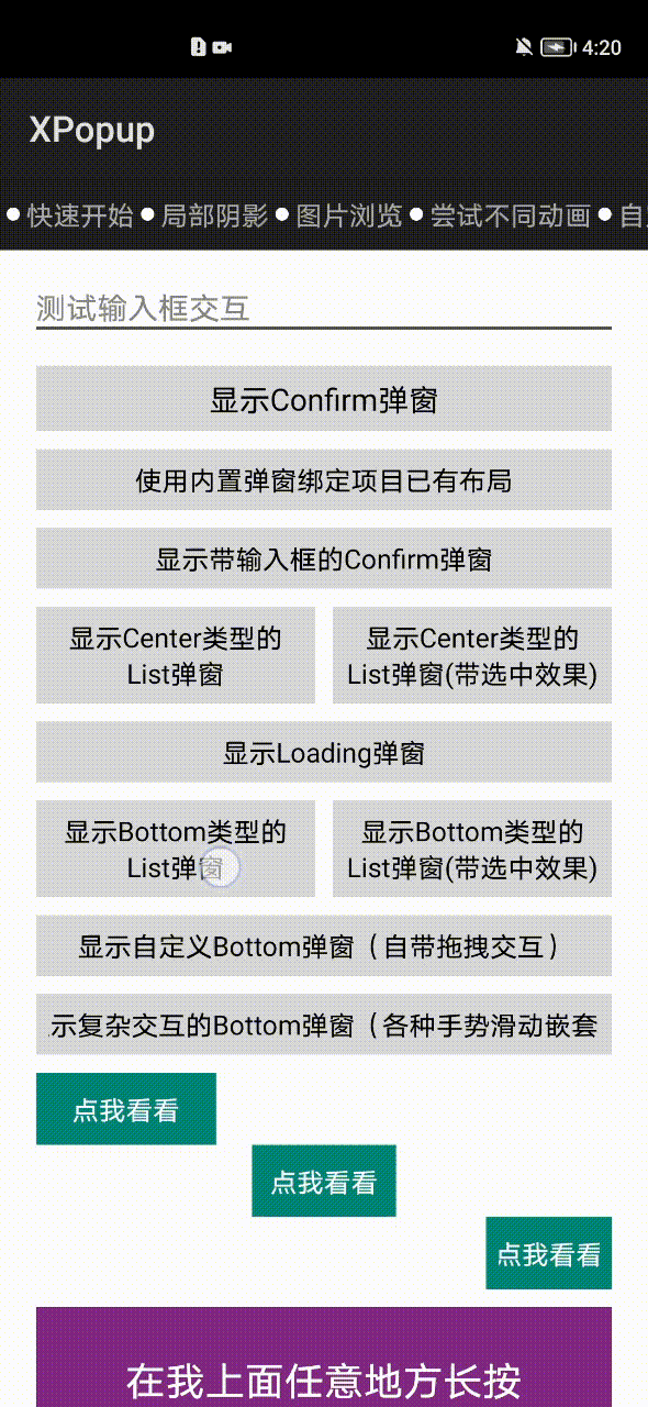 XPopup.setAnimationDuration(200); // 传入的时长最小为0,动画的时长会影响除Drawer弹窗外的所有弹窗