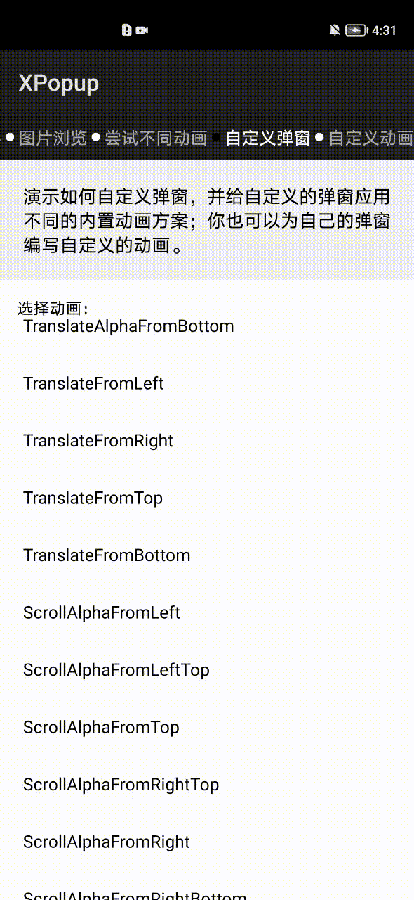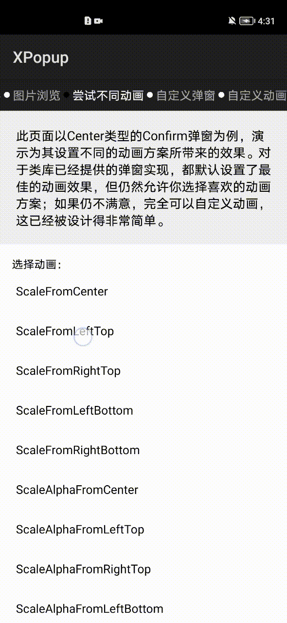 .popupAnimation(PopupAnimation.ScaleAlphaFromCenter) //设置内置的动画