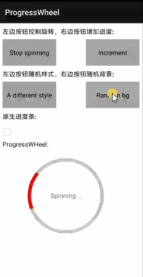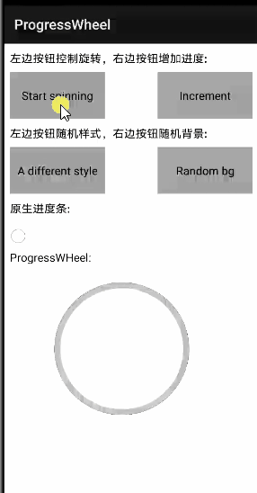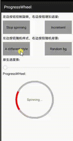 点击“Start spinning”按钮,此时进度轮会开始旋转,在旋转过程中按钮上的“Start