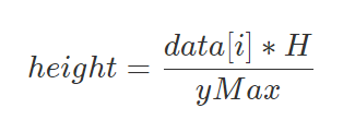 我们可以通过比例来算出第 i 个数据条的高度,我们设需要的数据条高度为 height,H 为 y 轴的实际使用的高度,yMax 为我们设定的 y 轴最大值,则: