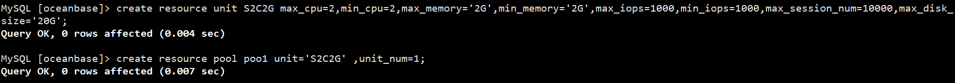 create resource unit S2C2G max_cpu=2,min_cpu=2,max_memory='2G',min_memory='2G',max_iops=1000,min_iops=1000,max_session_num=10000,max_disk_size='20G';