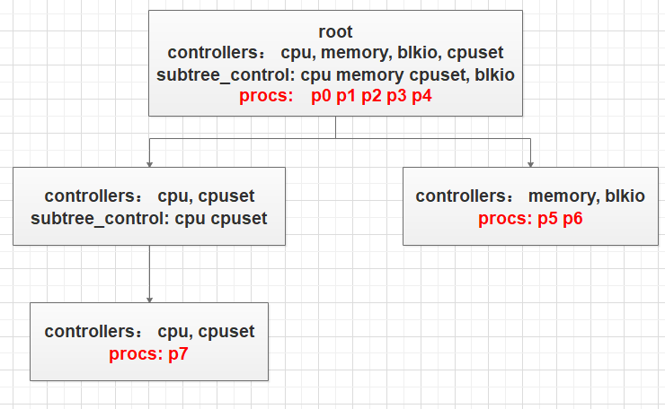 cgroupv2 的管理方式举例如下图所示: