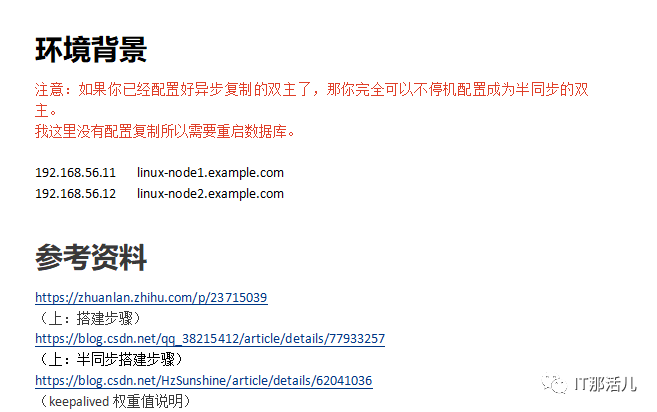 ! Configuration File for keepalivedglobal_defs { router_id KeepAlive_MySQL}vrrp_script check_run { script "/etc/keepalived/bin/mysql_check.sh" interval 30}vrrp_sync_group VG1 {group { VI_1 }}vrrp_instance VI_1 { state BACKUP interface eth0 mcast_src_ip 192.168.56.12 ---本机IP地址 virtual_router_id 51 priority 90 advert_int 1 nopreempt authentication { auth_type PASS auth_pass 1111 } track_script { check_run }