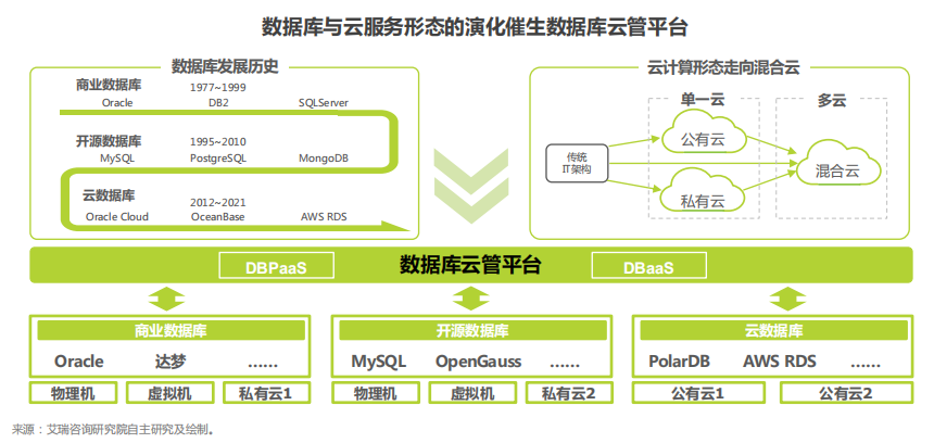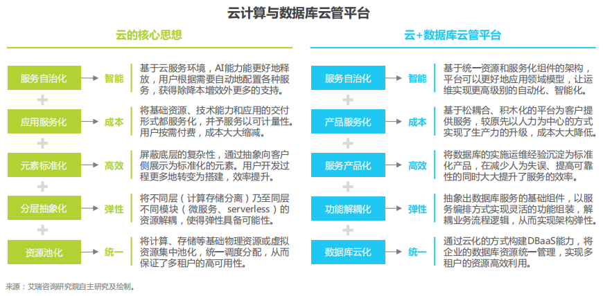 在数据库云管平台体系下,厂商通过数据库云化实现了异构资源的统一管理,通过解耦化、模块化、标准化和积木化将服务沉淀为产品, 并以PaaS的方式为客户提供弹性、自治、智能的服务。数据库云管平台是“云库共生”在数据库服务领域的最佳实践, 极大化融合了云服务的优势,实现了数据库管理的高效与智能。