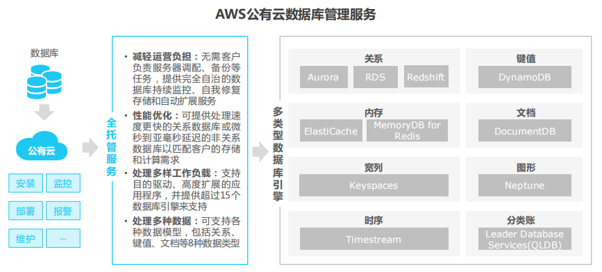 AWS拥有超过十年的云数据库服务经验,基于其丰富的产品和配套工具,能够为客户提供从数据库迁移起全生命周期的云数据库管理服务。