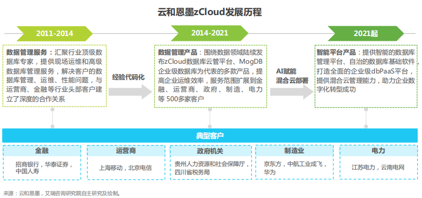云和恩墨立足于数据库领域,服务金融、电信、能源、政务等领先行业客户,积累了 大量来自一线的先进经验和前瞻需求,将之沉淀以实现产品化,并以此为基础不断创新,拥抱AI先进算法,打造智能化dbPaaS平台、自治的数据库系统。