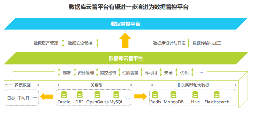 数据库云管平台是面向企业混合数据库环境,提供跨多云架构、跨多类数据库的一站式数据库管理服务的平台。数据库云管平台以标准化、自动化、智能化的方式为企业提供数据库安装部署、监控巡检、性能容量管理、提高可用性、安全管控等全生命周期数据库管理服务。为企业打造面向未来、统一规范、安全稳定、弹性高效、能力增强的数据库基础环境。