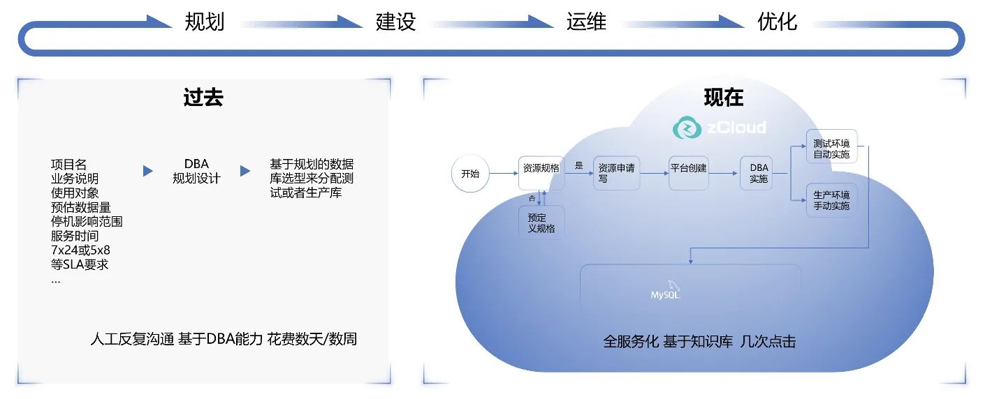 为满足客户多个系统领域的不同业务要求,zCloud支持的平台化多租户管理能力,不仅提供了租户之间的网络隔离,又实现了平台管理员对租户的资源分配和限额,实现数据库服务的敏捷化、自助化、自动化、智能化。至此,该航空公司关键业务系统七大领域,实现了MySQL数据库自动化部署,高可用,备份,性能统计,告警等的深度可用,真正完成了标准化、自动化、智能化和服务化的数据库全生命周期管理,也实现了使DBA无需专注于“数据库运维”本身而聚焦于“业务应用创新、数据价值分析”等更有意义的工作。