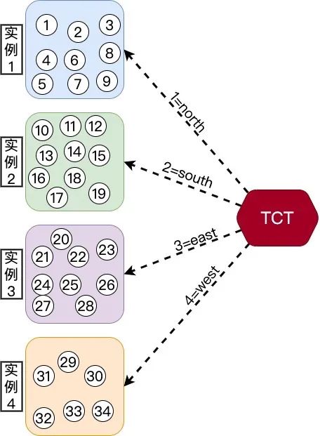 分片数量为4,每个分片对应到1个实例,即1个实例至少计算1个区域的数据;