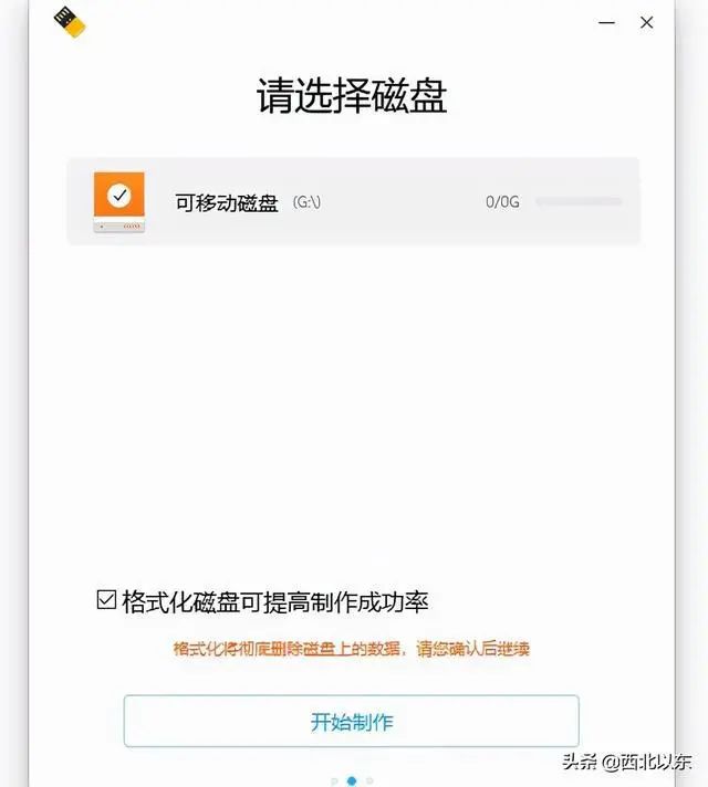 ❷选择插入电脑的U盘(注意备份数据,需要格式化此U盘)