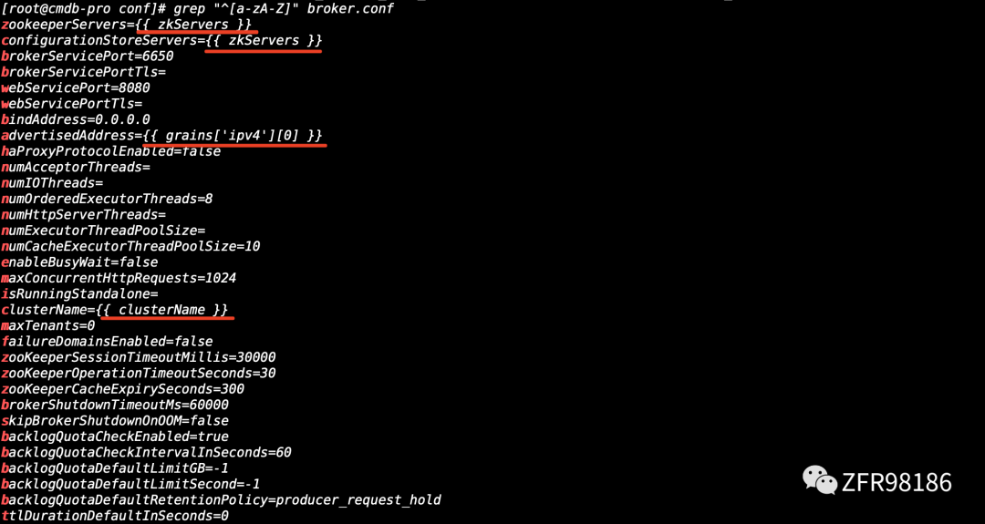 红色线标出来的是jinja模板转换后的参数,我们可以与之前的模板进行对照,我们定义的值成功的写入到配置文件中。