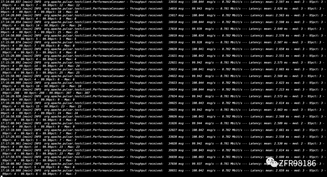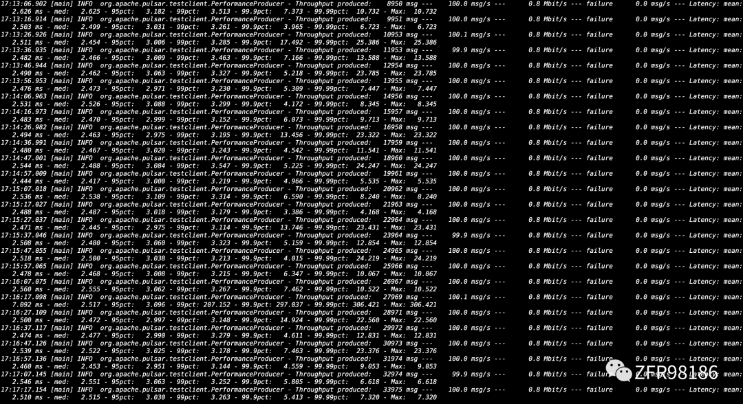 然后我们使用pulsar自带的压测工具,进行一些压测