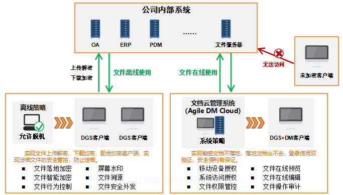 敏捷云文档管理系统Agile DM Cloud为企业搭建一个文档集中管理和在线使用的云平台。结合文档管理制度,从文档的访问、创建、归档、浏览、检索、分享和销毁等全生命周期提供集中管理与安全管控,解决居家办公文件安全、用户访问权限混乱、文档使用和存储不便等问题。结合DGS加密环境,可满足企业应对远程办公文件安全和管理的各种应用需求。
