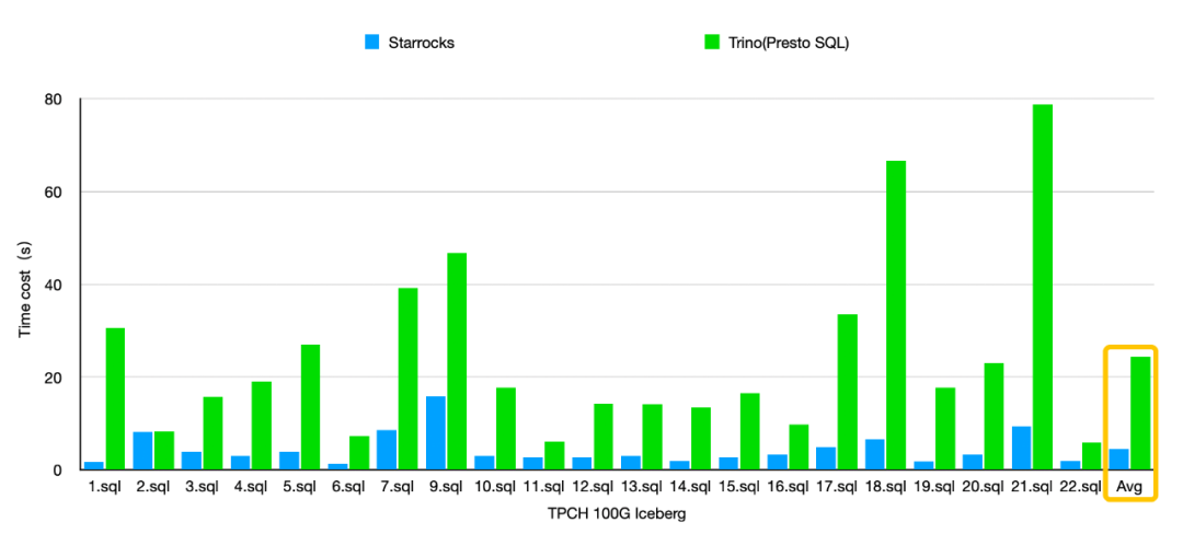 StarRocks 近期发布了 2.1 版本,核心更新有支持 Apache Iceberg 外表、发布 Pipeline 执行引擎、支持多达 10000 列的表、优化首次 Scan 和 Page Cache 的性能、支持 SQL 指纹等。支持 Apache Iceberg 外表(公测中)Apache Iceberg 是目前最为流行的构建数据湖的方案之一。在支持了 Hive 外表查询之后,StarRocks 也支持了直接查询 Apache Iceberg 数据湖上的数据,让用户在无需导入数据的情况下,就能实现对数据湖的极速分析。在 TPC-H 100G 测试集上,StarRocks 通过 CBO 优化器、向量化执行和 C++ Native 执行等优化,查询性能是 Trino (PrestoSQL) 的 3 - 5 倍。后续,我们会进一步优化查询 Apache Iceberg 数据湖的性能,同时也会实现查询 Apache Hudi 等其他数据湖方案的功能。执行引擎在多核调度方面,原有任务模型是采用线程调度,存在两个显著问题:一,在高并发查询场景下,数据依赖和 IO 操作的阻塞会引起较多上下文切换,导致较高的调度代价;二,复杂查询的并行度设置过于复杂。新发布的 Pipeline 执行引擎,采用更高效的协程调度机制,并且原有数据依赖和 IO 操作采用了异步化执行,降低了上下文切换的代价。在高并发场景下,部分查询性能提升为原来的 2 倍,CPU 利用率也显著提升;在 SSB、TPCH 和 TPCDS 测试集上,总体性能也有不错的提升。同时还实现了查询并行度的自适应设置,您无需再手动设置并行度变量 parallel_fragment_exec_instance_num 。在传统的数仓模型建设中,往往会建立一些大宽表以简化使用和优化查询性能。尤其是在用户画像等场景中,几百上千列的宽表也比较常见,一些超大客户会使用几千列的表。但在导入几千列的大数据(几亿行)后,特别是还有大字符串的场景,原有按整行 Compaction 的方式会占用大量内存,很容易触发 OOM,并且 Compaction 速度也变慢很多。新版本重构了 Compaction,按列分组分批进行多版本数据的 merge,并且优化了对大字符串的支持,减少了内存的使用。最终,在多达 10000 列表的大数据量导入场景下,内存节省了数 10 倍,Compaction 性能也提升为原来的 3 倍。优化首次 Scan 和 Page Cache 的性能在做大数据分析时,一些冷数据需要从磁盘读取(首次 Scan),一些热数据则可以直接从内存读取,两种场景下的查询性能可能会相差几倍甚至几十倍,核心原因是磁盘的随机 IO。StarRocks 通过减少文件数量、索引懒加载、调整文件结构等,减少随机 IO,提升了首次 Scan 的性能,尤其在 HDD 环境中,性能提升明显。对于 SSB-100G 测试集中几个首次 Scan 对查询性能影响较大的 SQL(如 Q2.1/Q3.1/Q3.2/Q4.1),在有首次 Scan 的情形时,其查询性能提升为原来的 2~3 倍。同时,StarRocks 也优化了自身的 Page Cache 策略,一些场景下会直接存放原始数据,无需经过 Bitshuffle 编码。因此在读取 Page Cache 数据时也无需额外解码,进而大大提升了查询效率。SQL 指纹是指对同一类 SQL 计算出的一个 MD5 值,其中,同一类 SQL 是指“规范化后只有常量不同的 SQL 文本”。通过汇总统计分析 SQL 指纹及相关信息,我们就能够很方便地了解有哪些类型的 SQL、它们出现的频率/消耗的资源/处理的时长等,从而可以对消耗资源多且不合理的 SQL ,优先进行高效的分析优化。SQL 指纹主要被用于慢查询优化、系统资源使用(CPU/内存/磁盘读写 等)优化。比如,如果发现集群的 CPU/内存使用不太高、但磁盘使用经常打满时,可以统计磁盘读占比最高的一些 SQL 指纹,再进一步分析具体 SQL 读磁盘的合理性,就可以找到一些优化点。