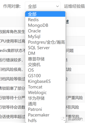网络交换机、应用中间件、存储系统这些非数据库对象也出现在了系统支持的对象列表里。