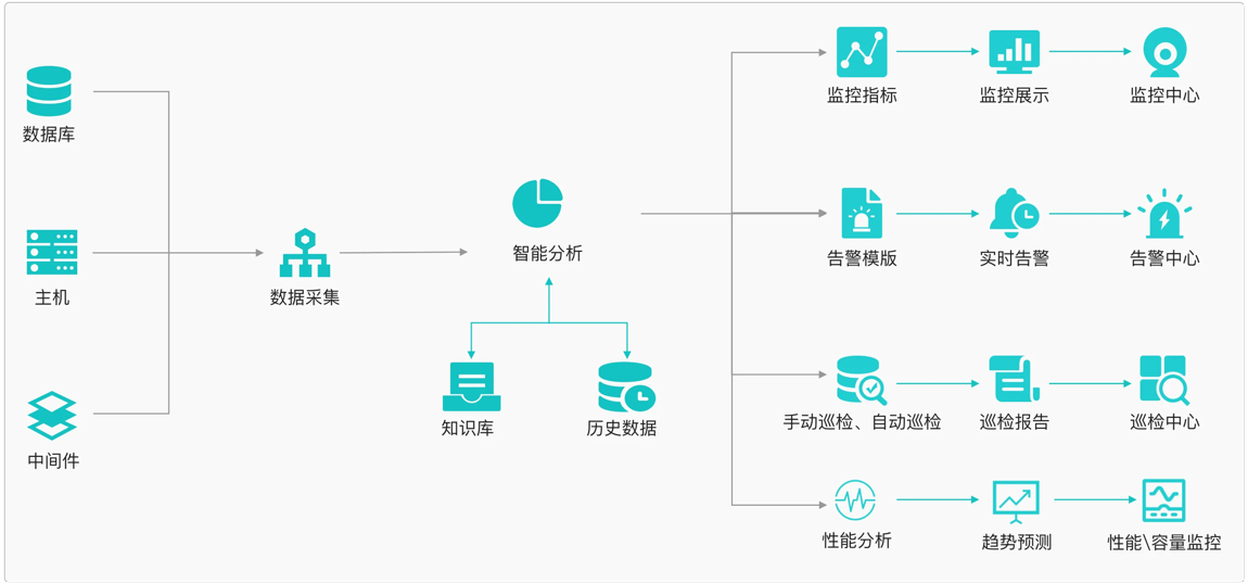 监管需求:为满足《商业银行数据中心监管指引》等监管相关规定和要求,应使用有效的监控管理工具,实时监控运行情况,快速定位故障、诊断、事后审计。
