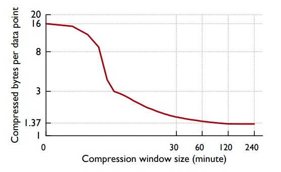 从图中可以看出在 2 小时之后,继续增大跨度带来压缩率提升的边际收益已经非常小,因此 Gorilla 最终选择 2 小时的时间跨度。