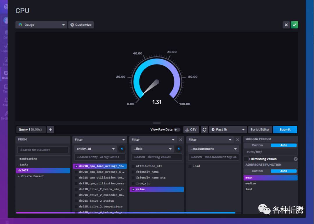 数据都存储在一个存储桶中。一个桶结合了数据库的概念和存储周期(时间每个数据点仍然存在持续时间)。一个桶属于一个组织。例如:ds3617