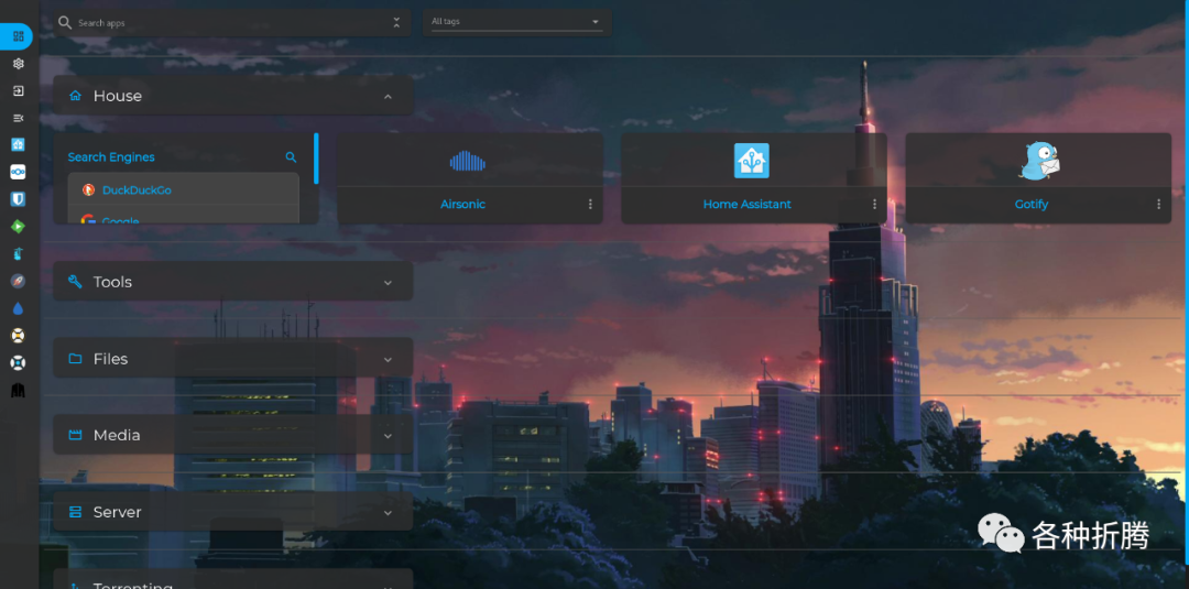 书签仪表板应用程序,让你能够从一个仪表板管理所有自托管应用程序。