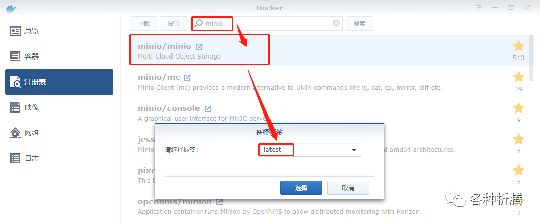在注册表中搜索 minio