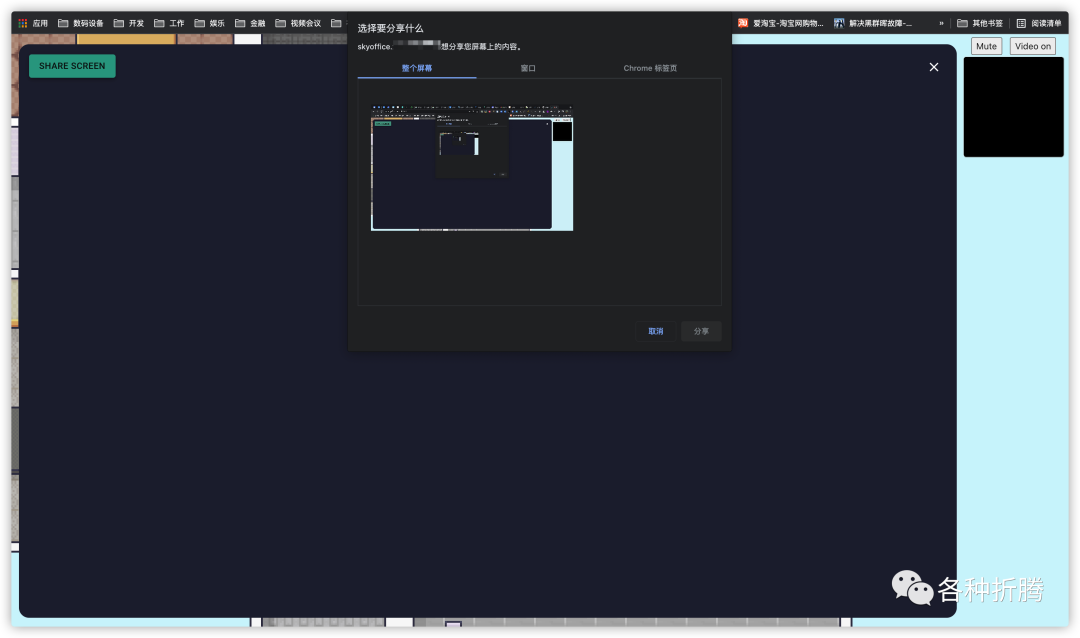 开启屏幕共享,可以选择要共享的内容