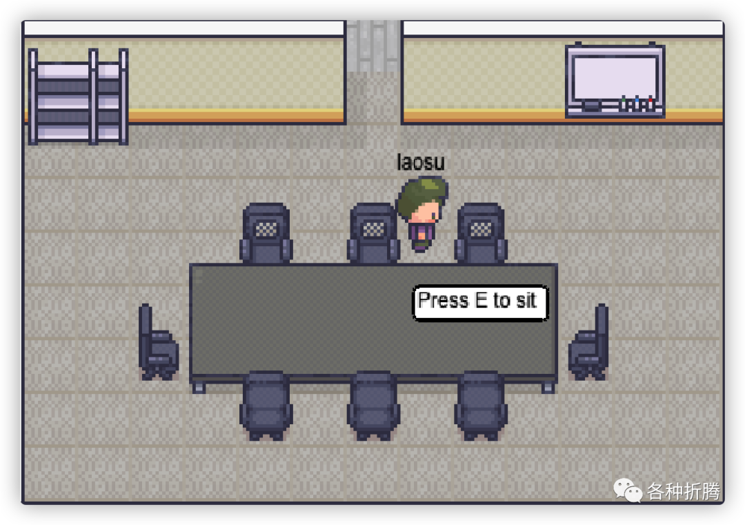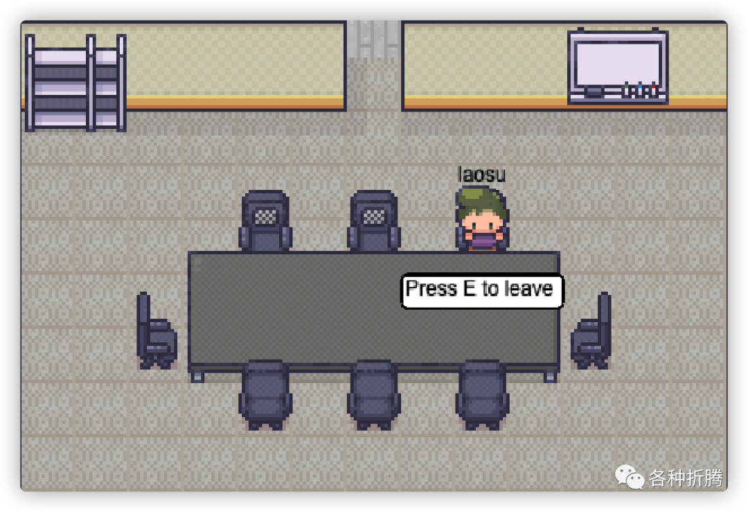 当在会议室时,会提示 Press E to sit