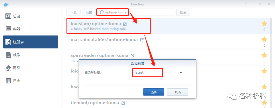 ,选择第一个 louislam/uptime-kuma