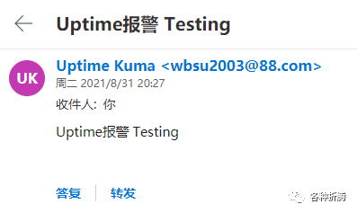 当检测不到时会收到下线的邮件通知