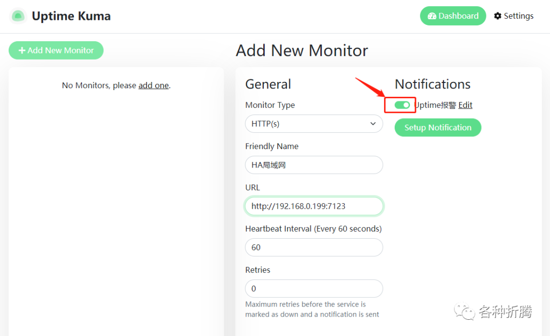 点 Add New Monitor
