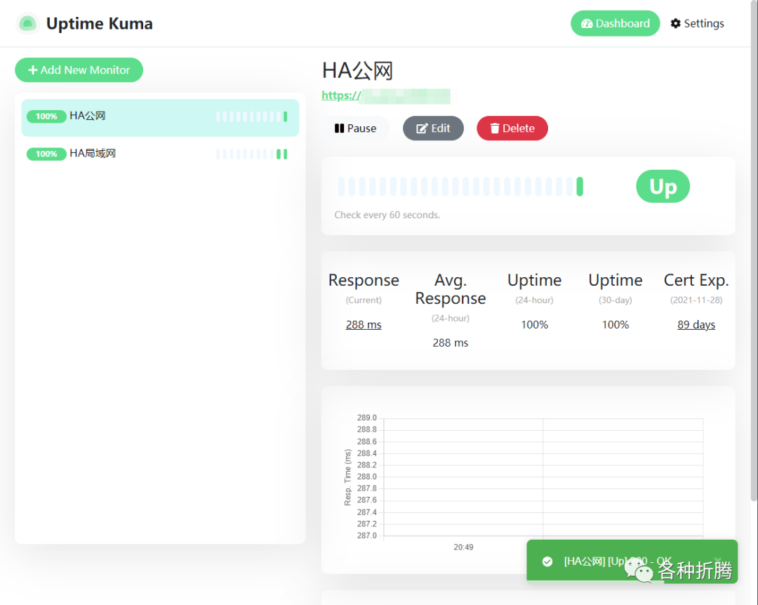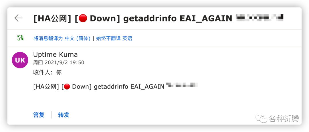 服务本身出了问题,但是借助 Uptime Kuma