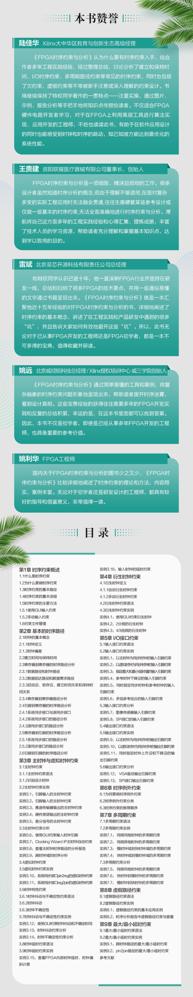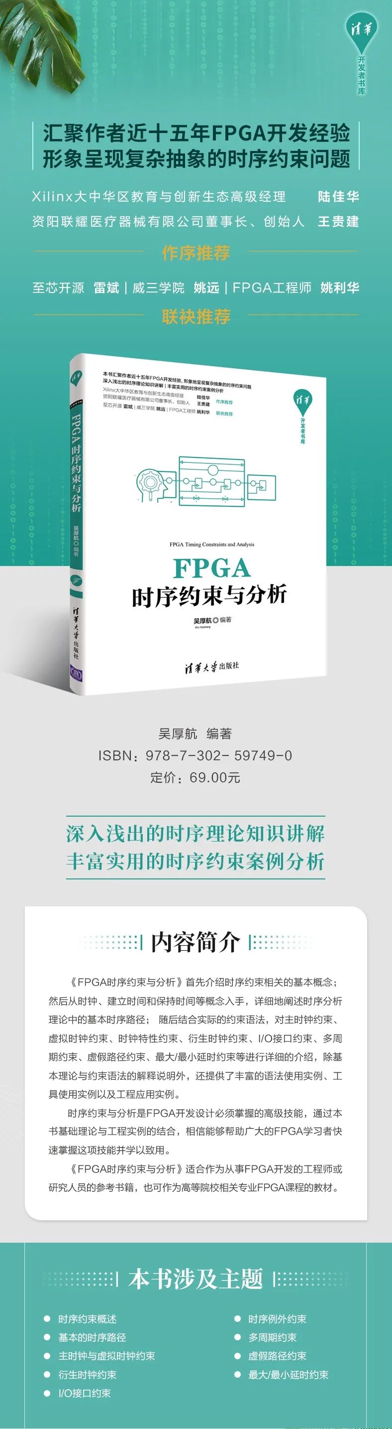 吴厚航 [网名:特权同学] 近十五年的FPGA工程实践与产品研发经历,擅长记录、分析并总结各种FPGA开发经验与技巧,也非常乐于分享。多年来笔耕不辍、风雨无阻,通过技术博客、FPGA论坛、自媒体等平台累计发表了近千篇FPGA技术文章,且著有8本FPGA技术相关图书。其著作内容,在理论和实践相结合的同时,贯穿了很多实用的经验技巧分享,在FPGA学习者中有着很好的口碑。