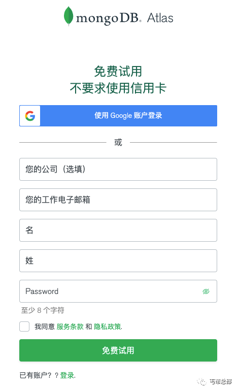 去MongoDB官网的cloud频道就可以申请:https://www.mongodb.com/zh-cn/cloud