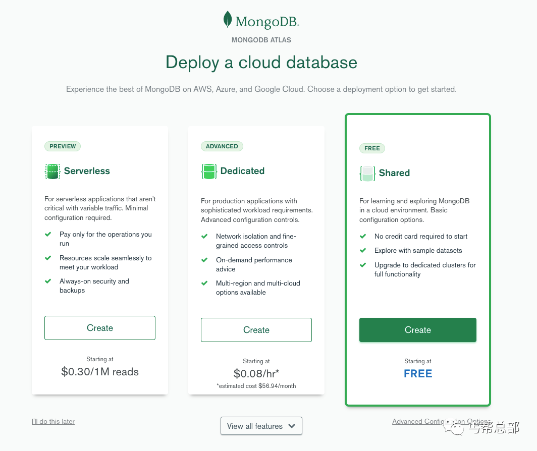 免费/高可用集群/随时随地可以访问/MongoDB官方提供