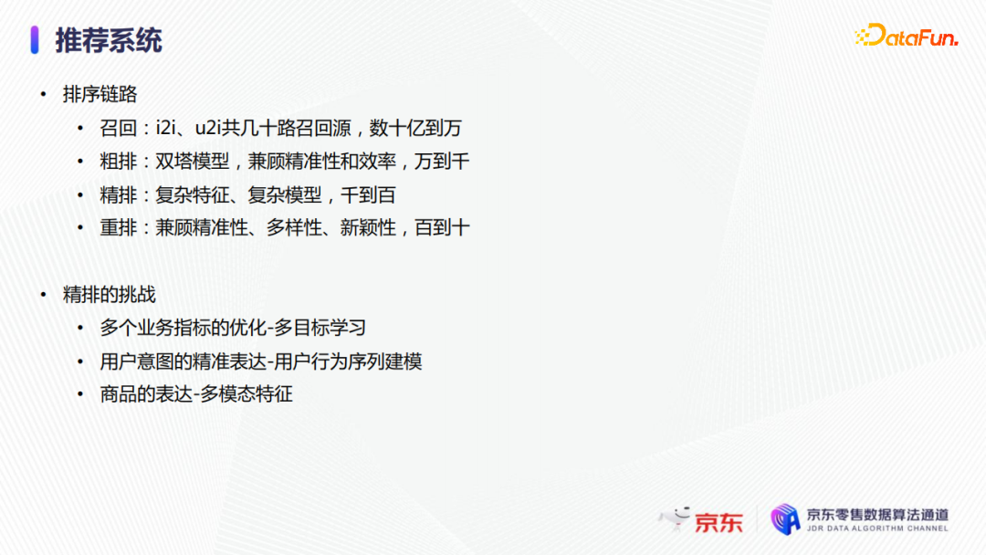 首先和大家分享下京东推荐中的排序链路以及主要挑战。