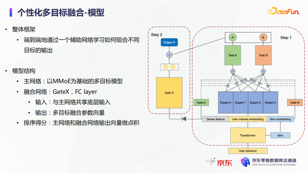 在多目标融合排序上,我们认为固定参数有一定的问题。用户在不同场景有不同的诉求,如有明确的购物意图或者仅仅是闲逛,固定的融合参数就无法使模型整体效果达到最优。因此我们提出了一个个性化多目标融合的方法,可以根据用户状态自动输出不同目标的融合权重。