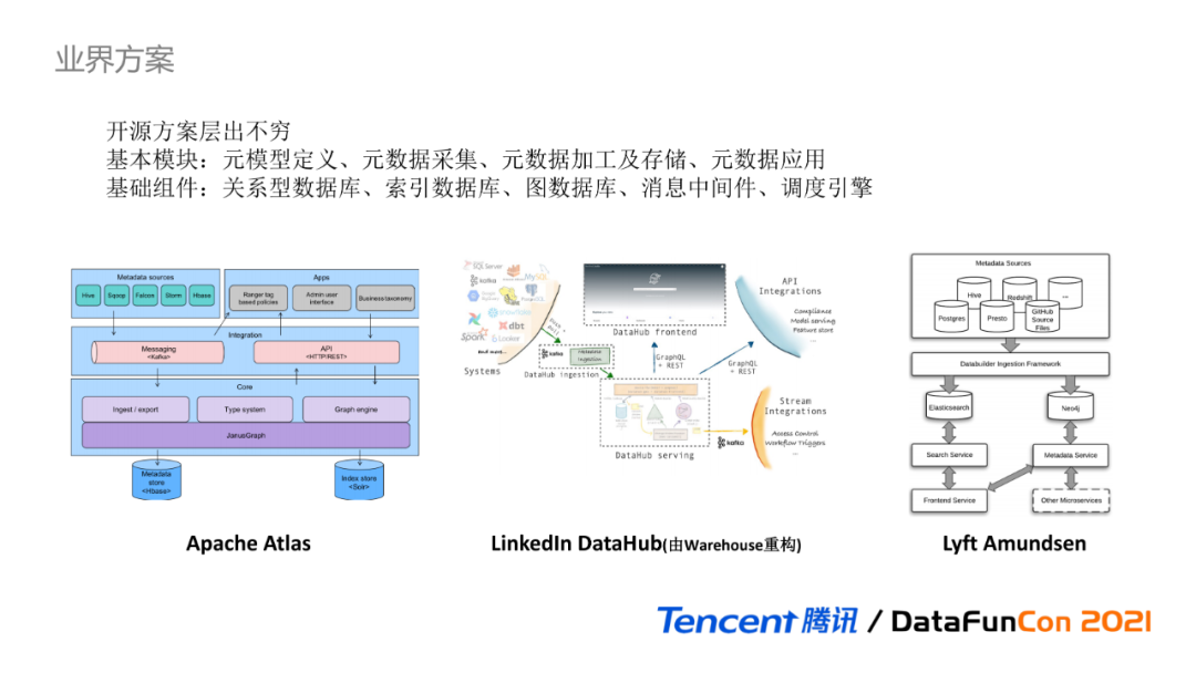 最后进入统一元数据的第二个核心功能模块:离线数据治理。针对元数据治理,各类开源方案在业界层出不穷,这里列举了几个业内比较流行的元数据管理组件: