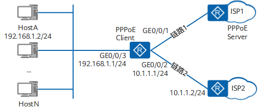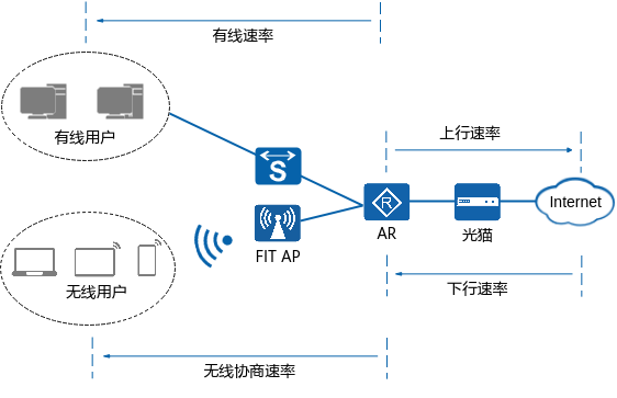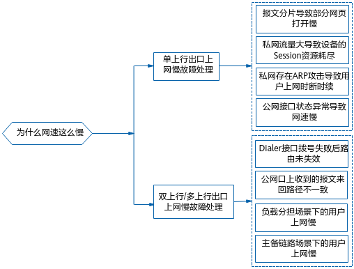 图1-2 单上行出口上网场景组网示例双上行/多上行出口上网慢